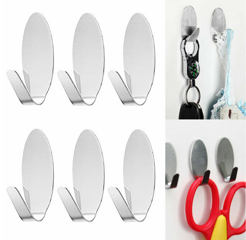 6/12 Pcs Self Adhesive Hooks Stainless Steel Strong Silver Sticky on Wall Hang