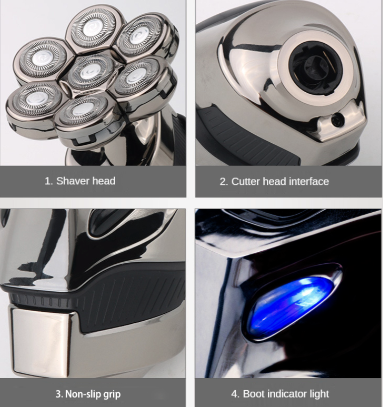 7D Cordless Shaver Hair Trimmer Men’s 5-In-1 Electric Head Shaver Razor Men Wet