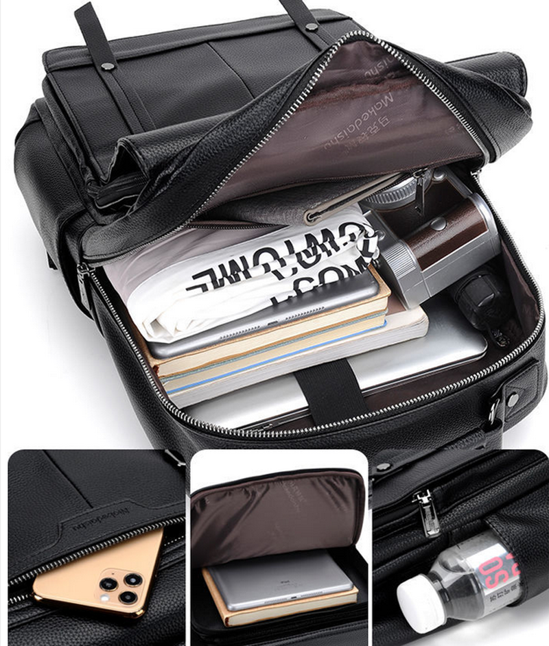AU Fashion Mens Genuine Leather School Backpack Laptop Travel Waterproof Bag