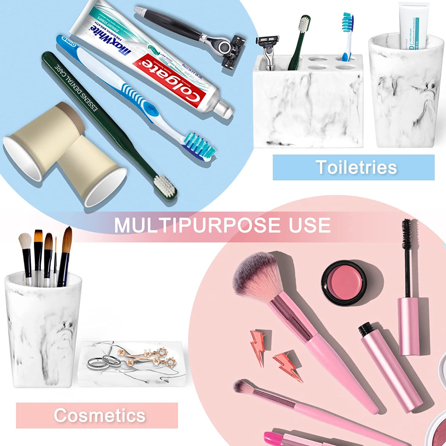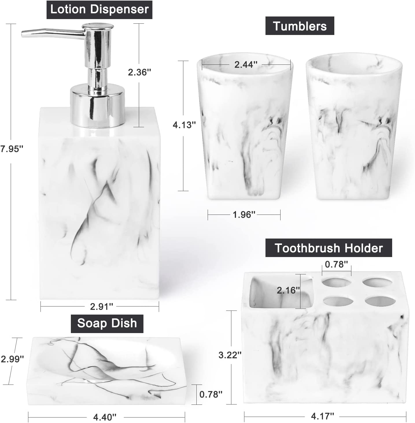 Bathroom Accessories Set Marble Look Set