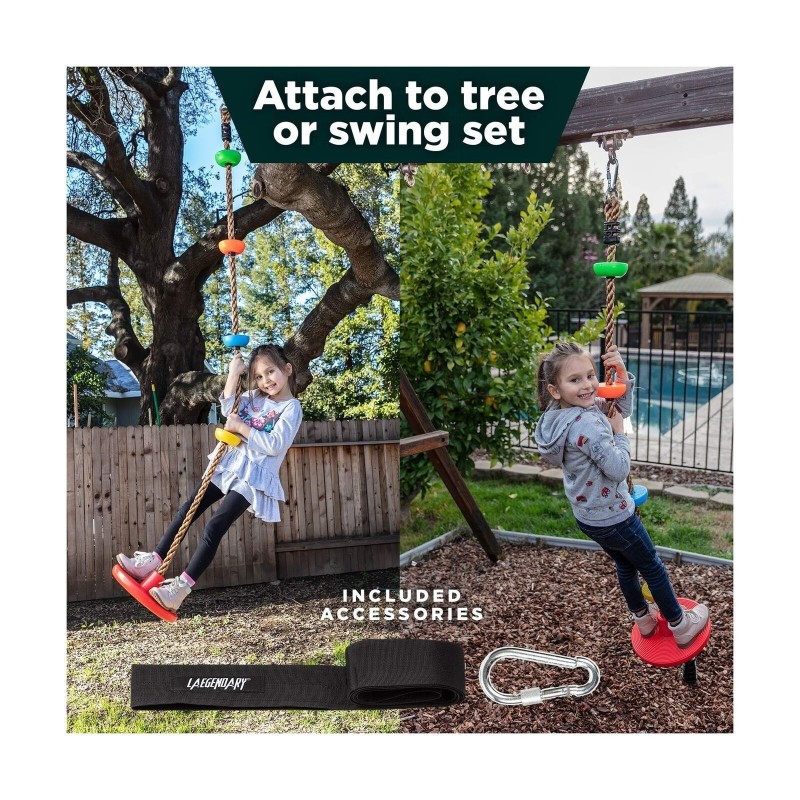 LAEGENDARY Tree Swing for Kids - Single Disk Outdoor Climbing Rope w/Platform...