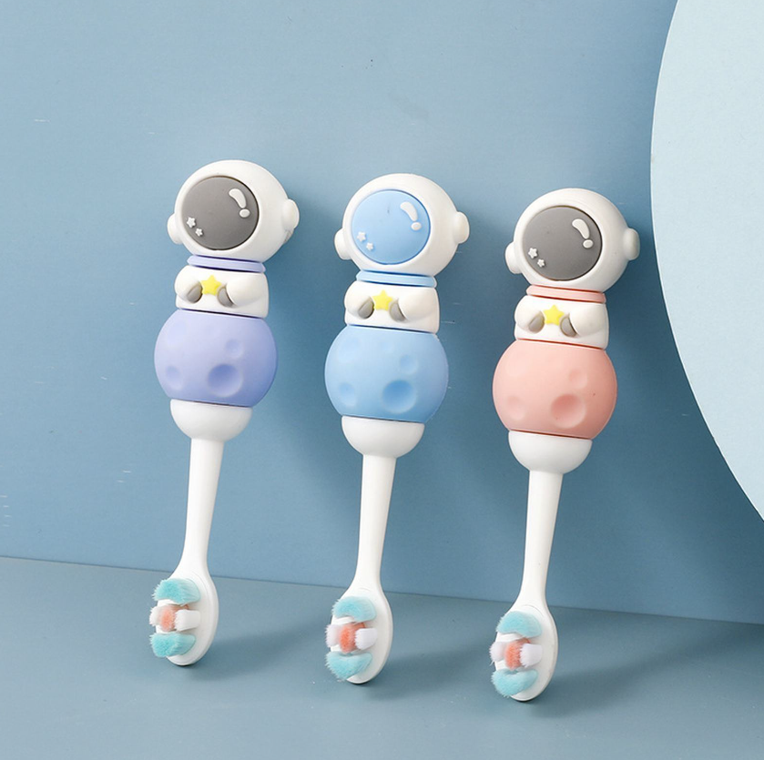 Manual Silicone Kids Toothbrush Soft Bristles Care Cleaning Brush Baby Toothbrush Children's Cartoon Astronaut Toothbrush