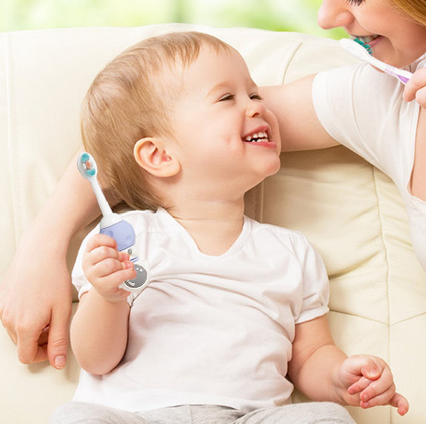 • With its brush head, it can clean around a tooth without worrying if there's a missed on your child's tooth!