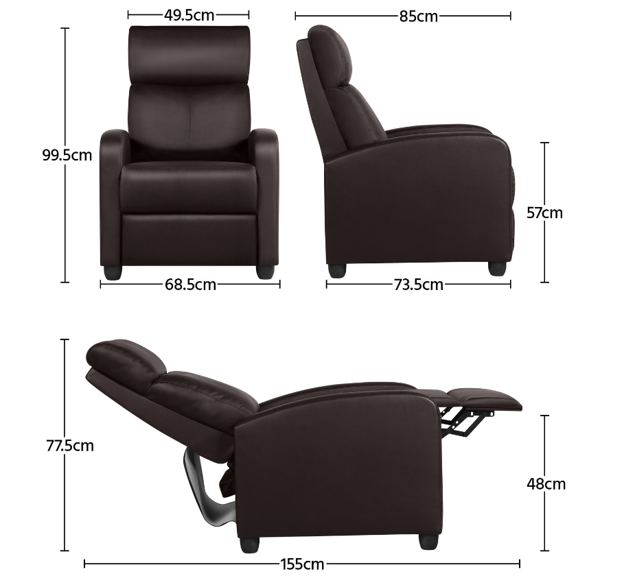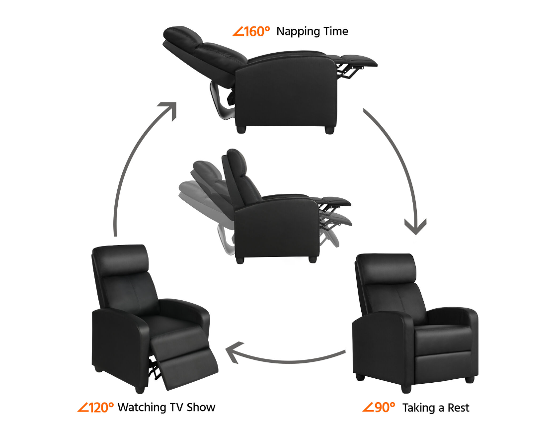 ● Sturdy home-use recliner: This adjustable recliner is constructed of strong composite wood frame. The robust recliner sofa is capable of holding up 120 kg/265 lb.