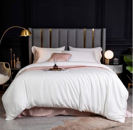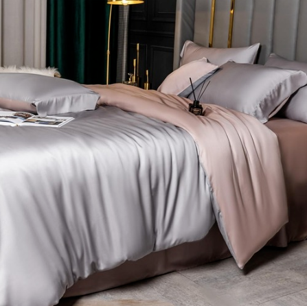Soft Bedding Set Gray Reversible Duvet Cover Bed Sheet Pillow Silky Soft 4Pcs